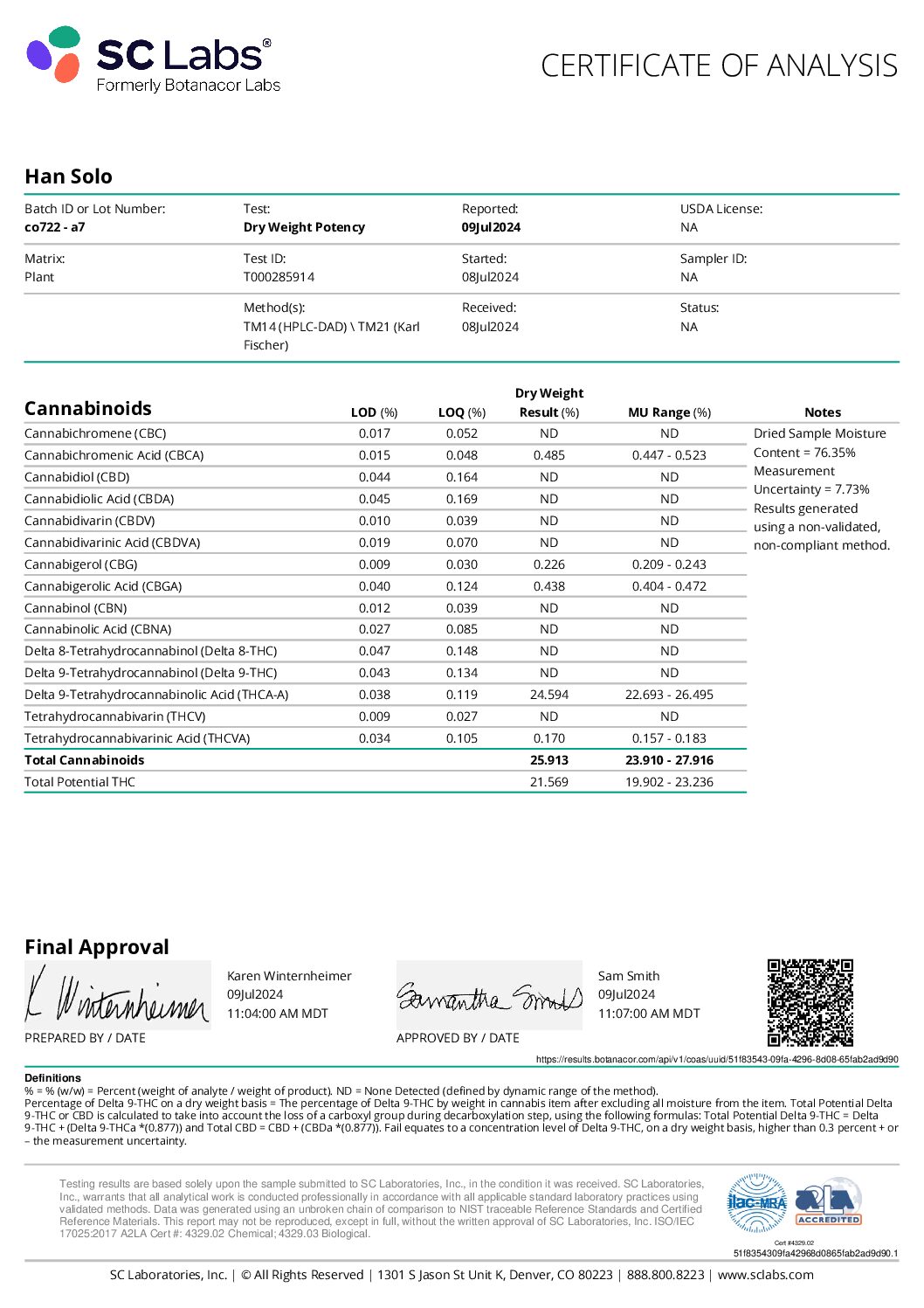 THCa Flower Lab Test Results